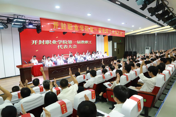 17时,大会召开闭幕式,工作人员宣读了大会通过的各项决议(草案),全体代表表决通过了《学校工作报告》《开封职业学院章程》《开封职业学院教职工手册》、学校监事会成员教职工代表人选。